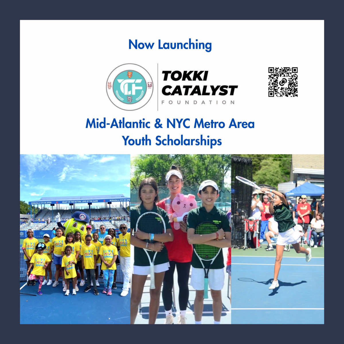 Tokki Catalyst is proud to expand its Youth Scholarship Program to the Eastern (NYC Metro) and Mid-Atlantic (DC / MD / VA) regions. Building on the success of our Southern California launch, each region will award two $1,500 scholarships to support youth tennis players who demonstrate dedication to the sport, academic commitment, personal growth, and financial need. Applications are now open and will close on March 31. View the full announcement and learn more through our social post below.